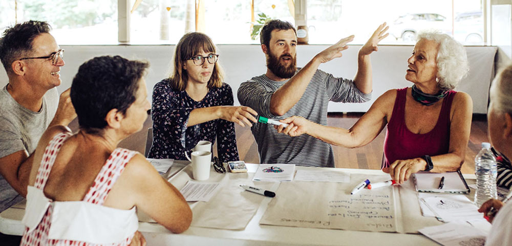 At each event, a local ‘big thinker’ has shared aspects of their life story as well as one concrete idea that they believe will help create resilience and regeneration. Through a guided workshop process, participants then have the opportunity to share their own ideas before working together to figure out what we, as communities, organisations and changemakers, need to make the Byron region a blueprint for local and regional positive change. All the ideas generated will be showcased and further workshopped at Renew Fest in May 2021.